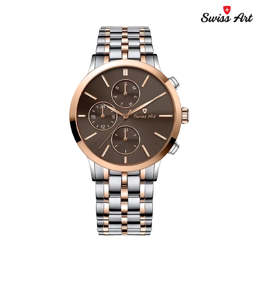 SWISS ART تنها یک ساعت نیست؛ امضاییست بر مچ دست شما که از سلیقهای اصیل، طراحیای بینقص، و نگاهی ماندگار حکایت میکند.