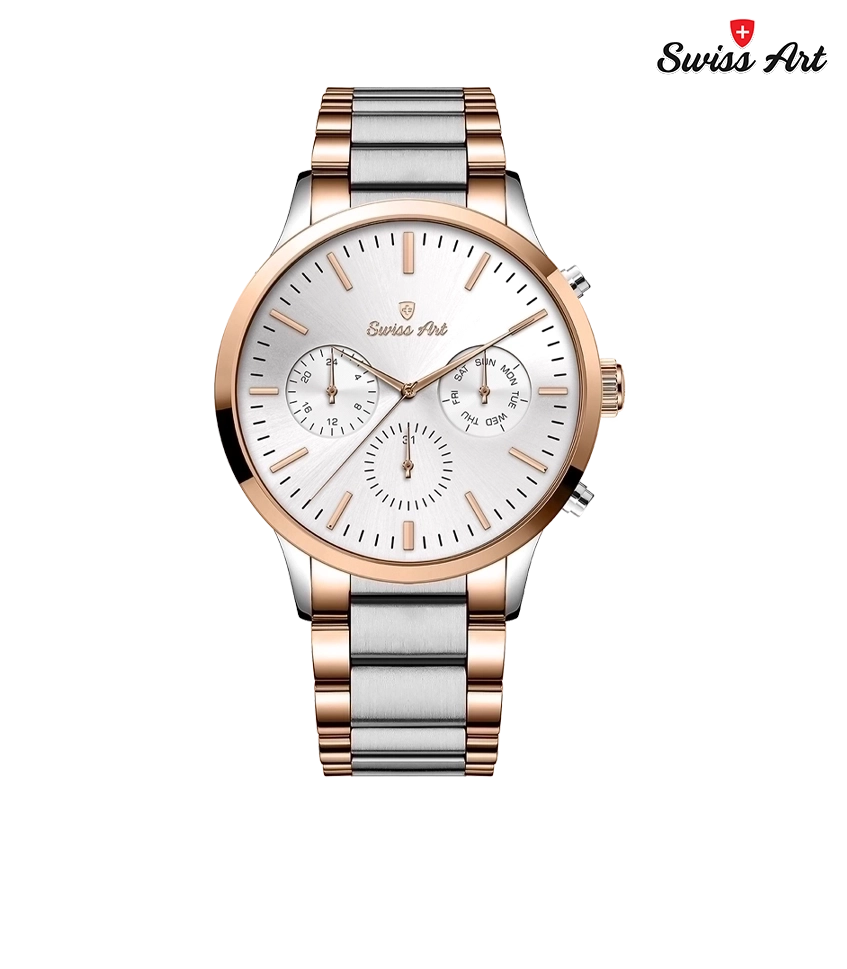 SWISS ART تنها یک ساعت نیست؛ امضایی‌ست بر مچ دست شما که از سلیقه‌ای اصیل، طراحی‌ای بی‌نقص، و نگاهی ماندگار حکایت می‌کند.