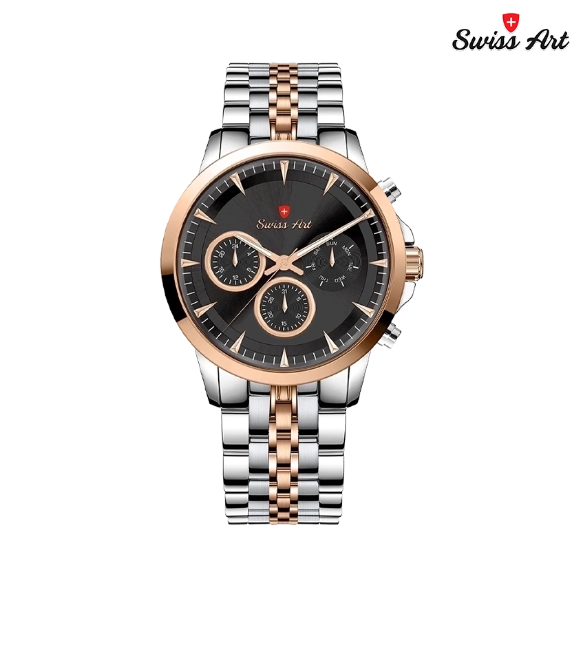 SWISS ART تنها یک ساعت نیست؛ امضاییست بر مچ دست شما که از سلیقهای اصیل، طراحیای بینقص، و نگاهی ماندگار حکایت میکند.