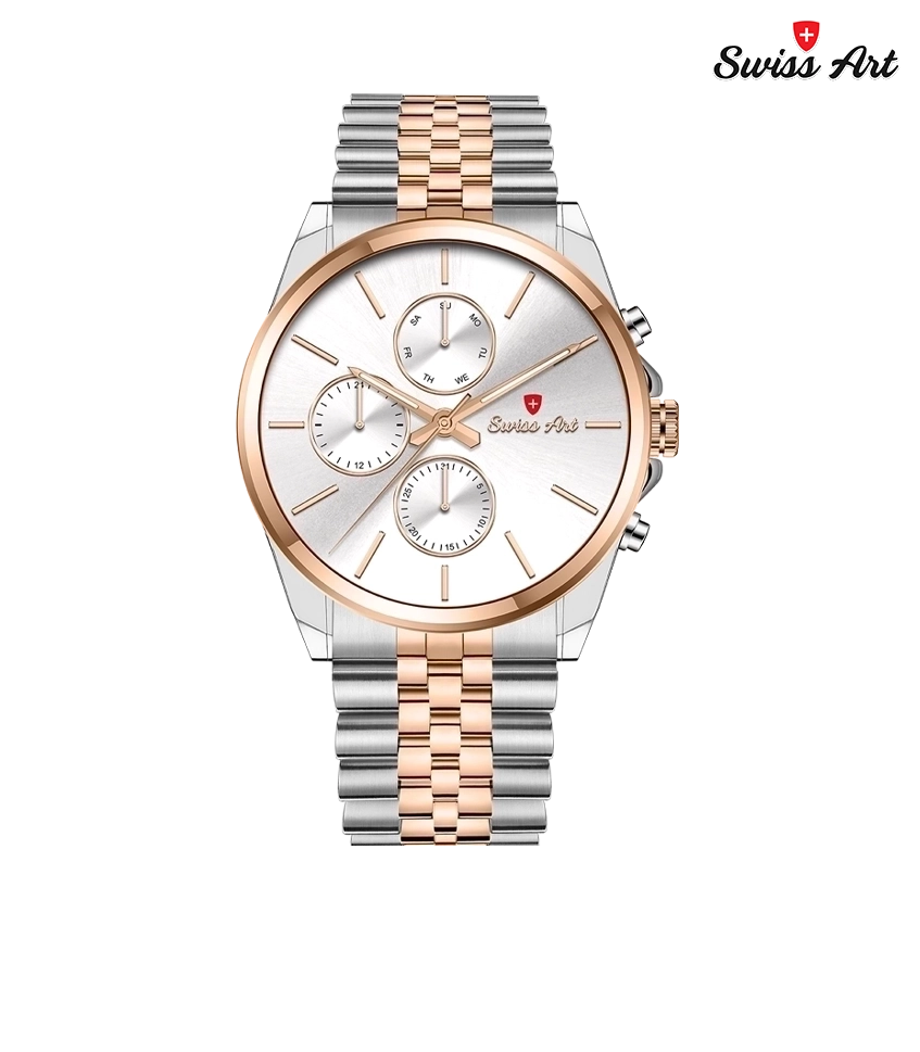 SWISS ART تنها یک ساعت نیست؛ امضاییست بر مچ دست شما که از سلیقهای اصیل، طراحیای بینقص، و نگاهی ماندگار حکایت میکند.