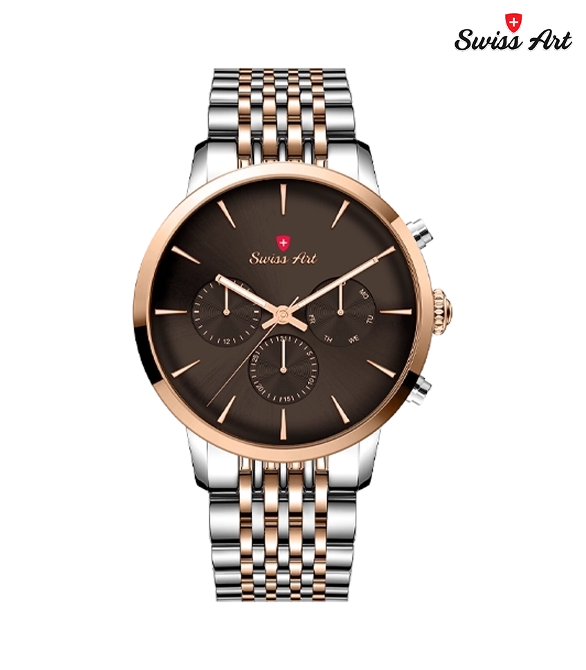 SWISS ART تنها یک ساعت نیست؛ امضایی‌ست بر مچ دست شما که از سلیقه‌ای اصیل، طراحی‌ای بی‌نقص، و نگاهی ماندگار حکایت می‌کند.