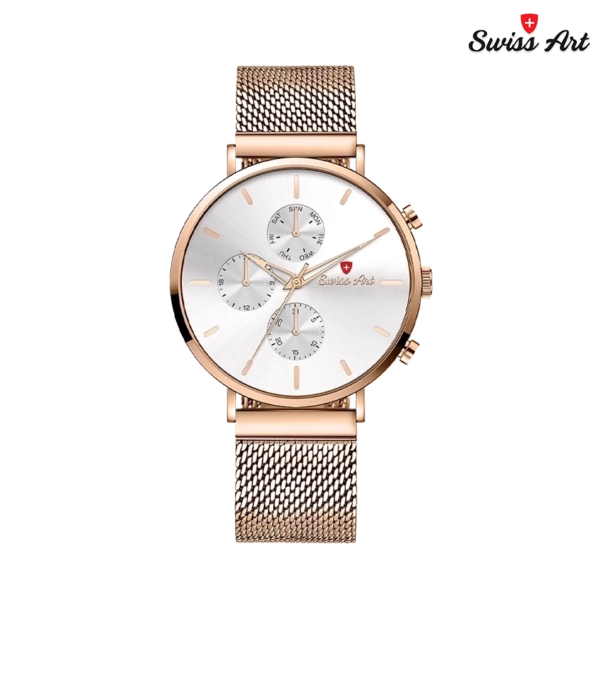 SWISS ART تنها یک ساعت نیست؛ امضاییست بر مچ دست شما که از سلیقهای اصیل، طراحیای بینقص، و نگاهی ماندگار حکایت میکند.