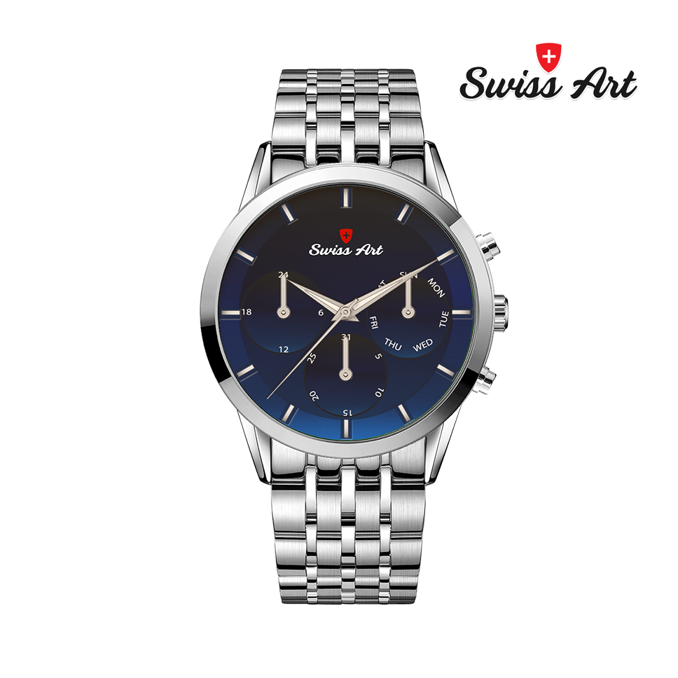 بازرگانی زمان‌داران شاد، با افتخار واردکننده‌ی رسمی برند SWISS ART، میراث‌دار ظرافت، دقت و وقار است. از همان روز نخست، باورمان بر این بوده که زمان چیزی فراتر از عقربه‌هایی در حال حرکت است؛ زمان، داستان زندگی‌ست — و هر ساعت، راوی آن.